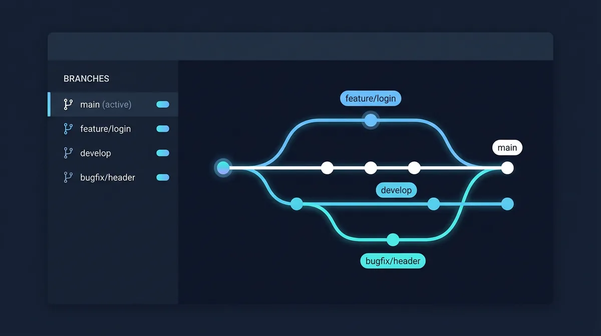 Practice Git branching visually. Create branches, switch between them, and understand how isolated work turns into clean merges.