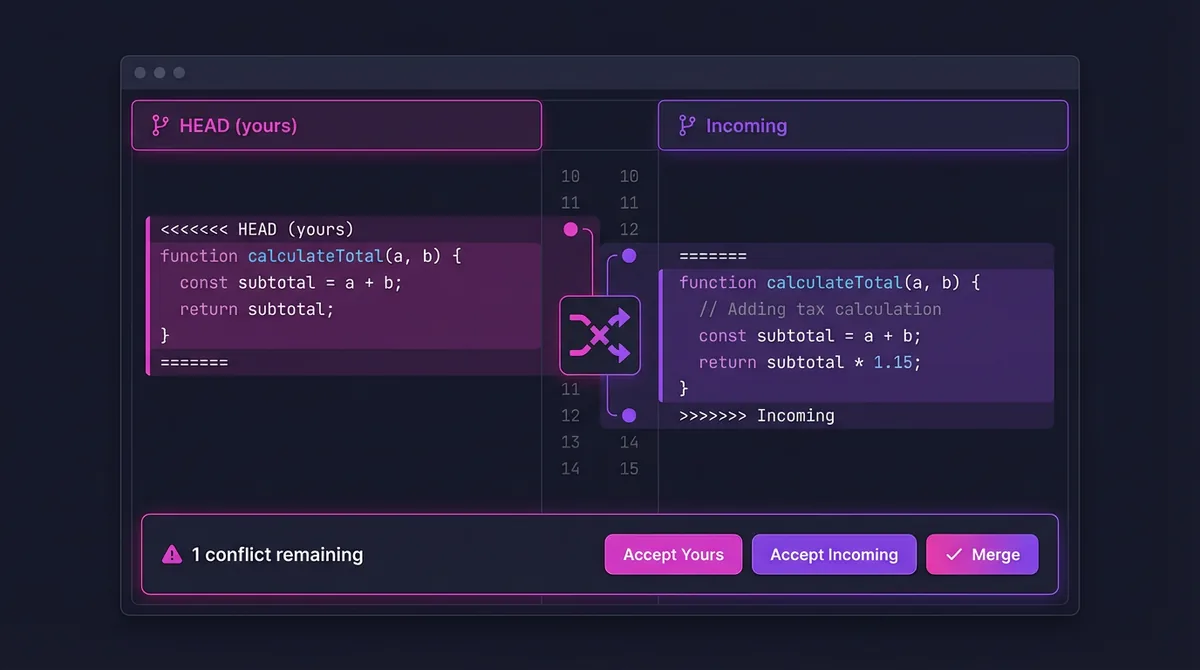 Understand Git conflict markers, compare both sides of a merge, and practice resolving merge conflicts without breaking your history.